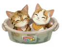 Two rescue cats captured hearts with their silly bowl moments and cozy cuddles.